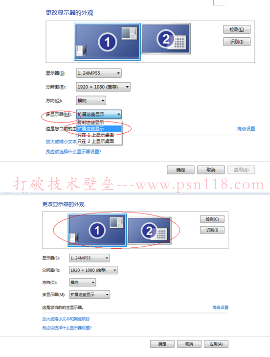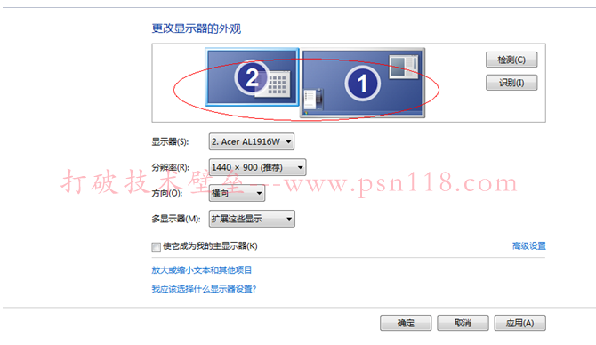 (3)定位表示 你所需的主屏与扩展屏的位置。成功的话,结果如下: