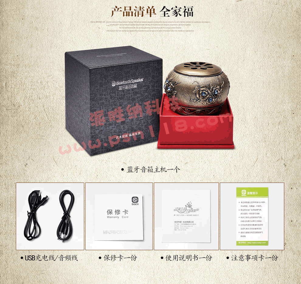 便携迷你小音响,低音炮 ,可插卡,纯手工打造,艺术雕琢 古铜色