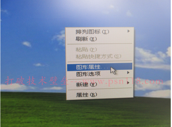 (2)然后在桌面,鼠标右键—“图形属性”: