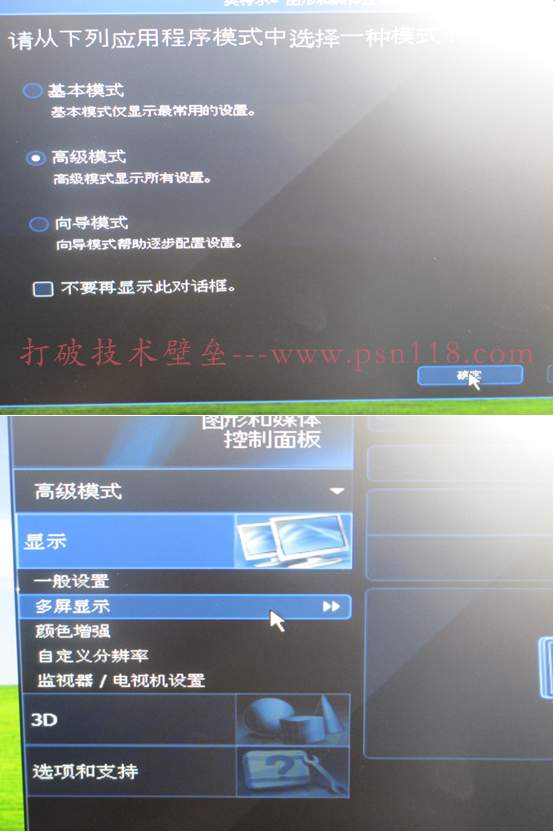 3、用独显+集显的方式搞,成功率很低。尽量是用独显自带的输出二个接口 或者 集显主板自带的2个输出接口搞。