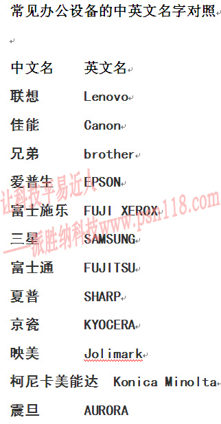 000、常见办公设备中英对照